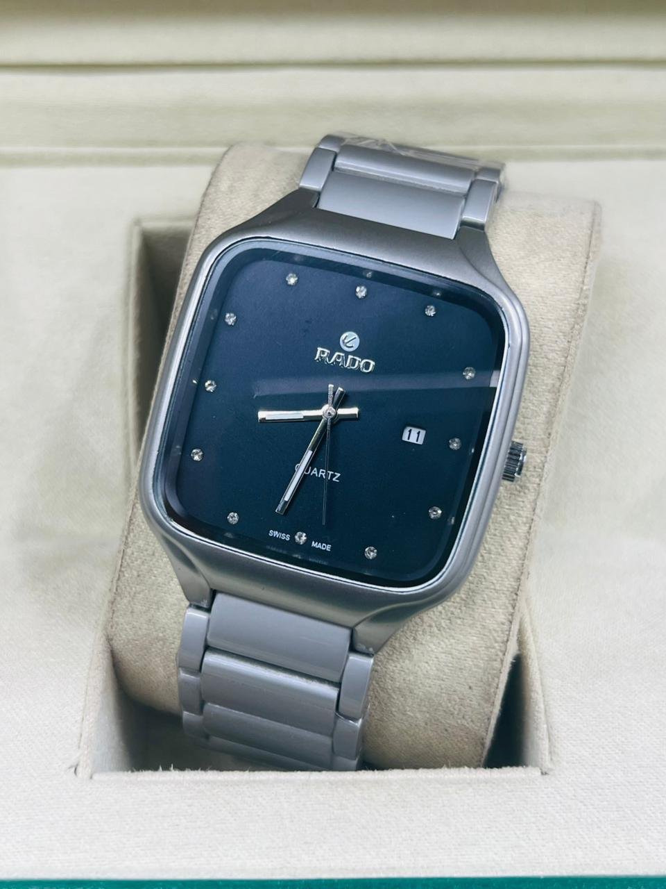 💎 Product Description: Rado Square-Case Quartz Watch with Diamond Accents